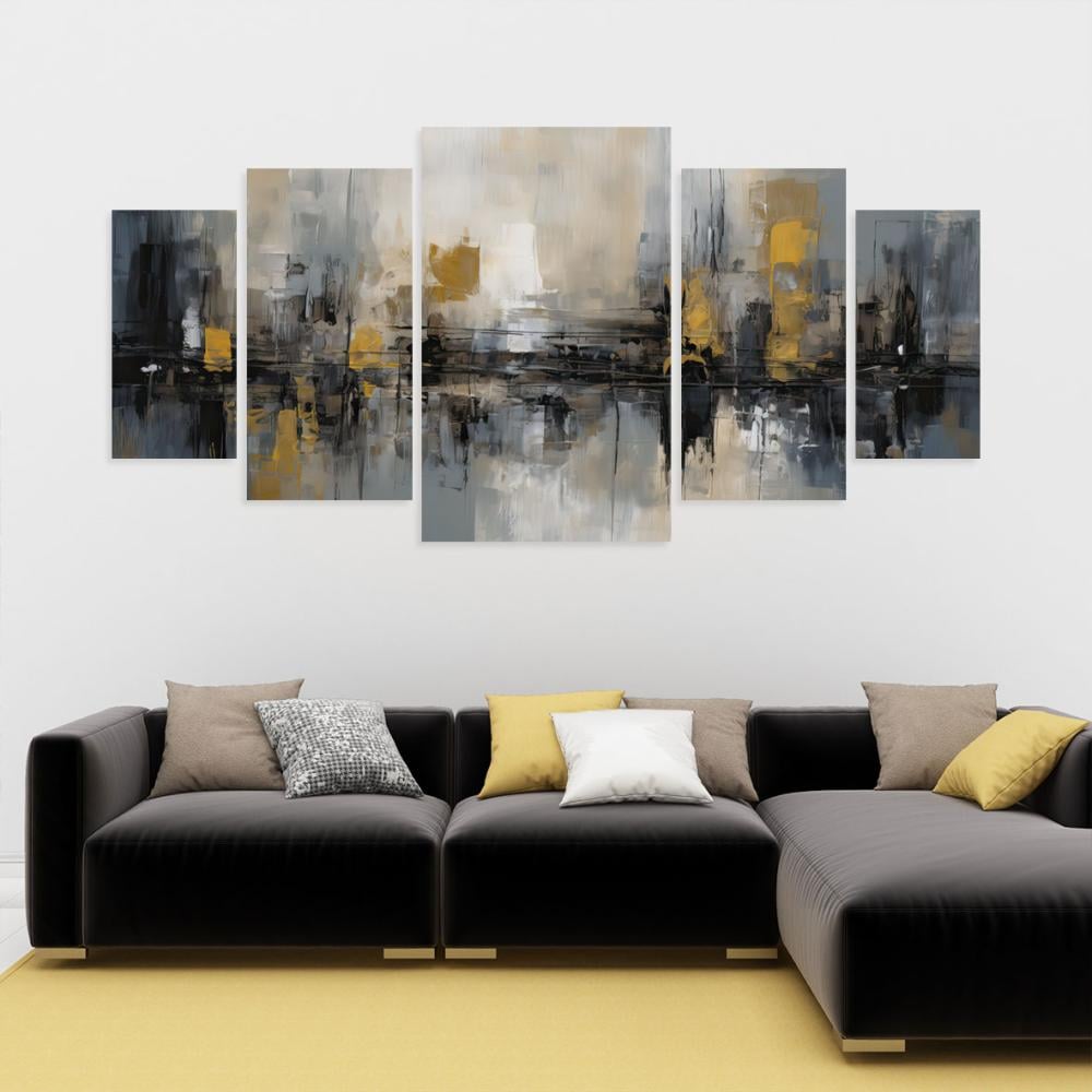 طقم لوحات فن تجريدي مكون من خمسة لوحات مقاس لوحتين 30.60سم ولوحتين 40.80 ولوحة 100.60سم إجمالي اللوحة عرض 200سم . ارتقاع 100سم