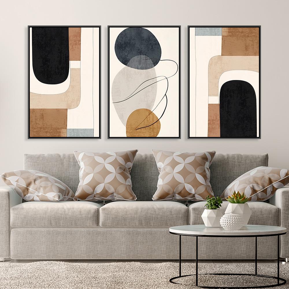 لوحة ثلاثية فن تجريدي بتصميم مودرن المقاس لكل لوحة