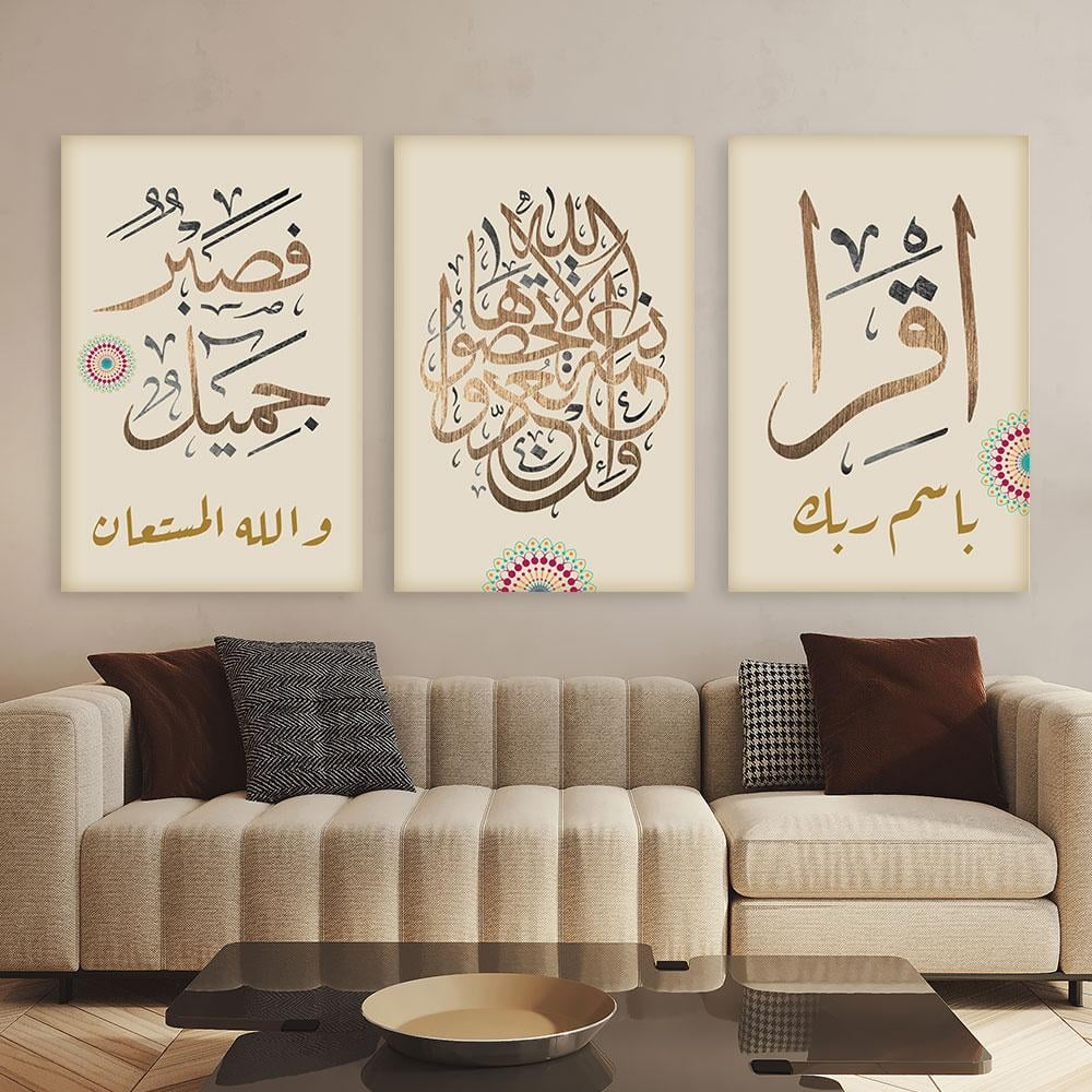 لوحة ثلاثية فن اسلامي بتصميم مودرن