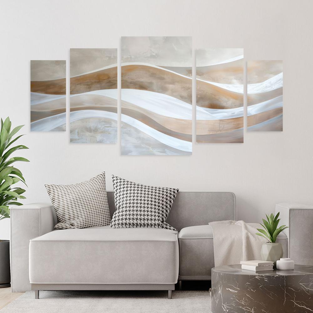 طقم لوحات فن تجريدي مكون من خمسة لوحات مقاس لوحتين 30.60سم ولوحتين 40.80 ولوحة 100.60سم إجمالي اللوحة عرض 200سم . ارتقاع 100سم