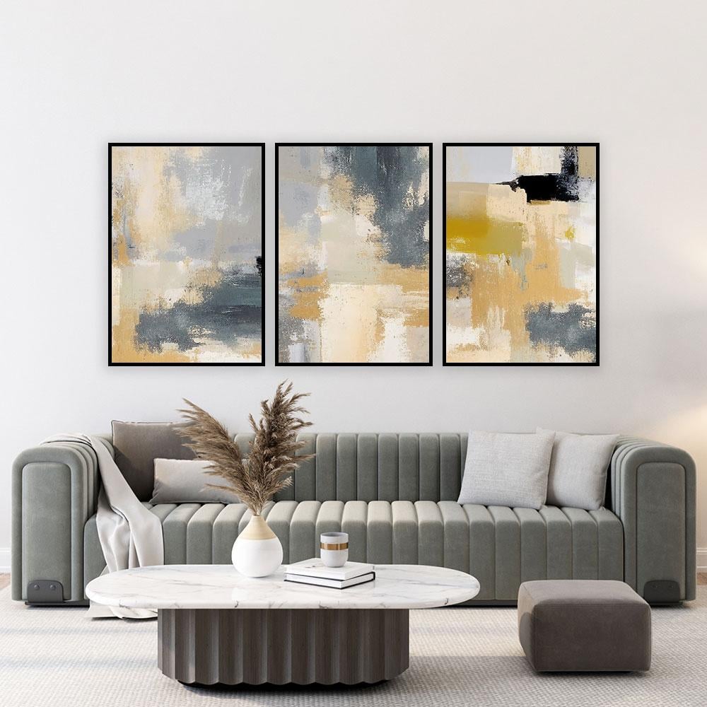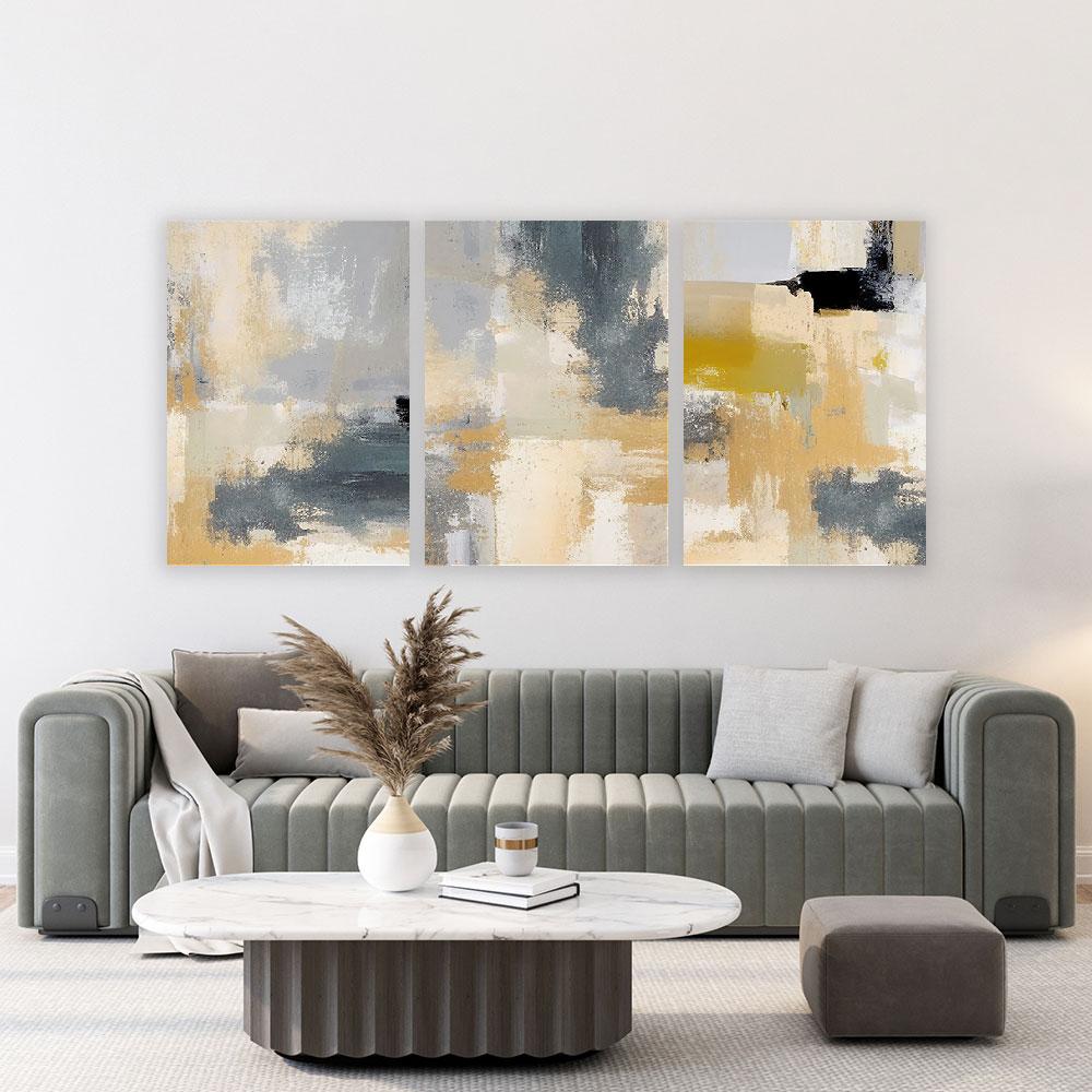 لوحة ثلاثية فن تجريدي بتصميم مودرن المقاس لكل لوحة